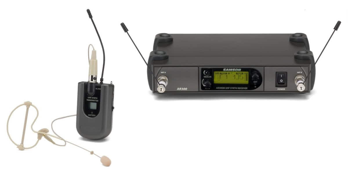AIRLINE SYNTH -U SE10T Радиомикрофонная система (300 каналов): приёмник AR300, поясной передатчик AL300, головной микрофон SE10T (бежевый), рековое крепление, диапазон частот 798 - 805,875 Мгц